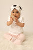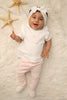 Sheer Hugs set of half sleeve white t-shirt and baby pink pants are an elegant and stylish collection for your beloved daughter. The frill on the tshirt makes it look very stylish and the pants are the leggings style which makes it an apt match as a set to wear for parties as well as casual wears. Made with 100% organic cotton, the set offers exceptional comfort and softness. Trending colors and the most comfort wear for a regular use which can be worn in all the seasons.