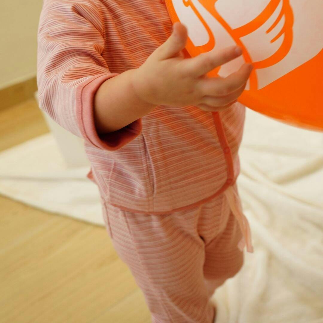 GOTS certified organic cotton Made from pure organic cotton, and fully certified by GOTS (Global Organic Textile Standard). The certification ensures that this garment is completely organic from seed to the final garment and meets the highest standards of environmental and social responsibility. Grown and processed in India, crops are free from genetically modified seeds and promote clean air, water, and soil. The entire supply chain follows GOTS standards, and no harmful chemicals or heavy metals are used. Our employees are paid fairly and work in a safe environment free from discrimination, with no child labour permitted. Read more here. Organic cotton is soft, breathable, and easy care, making it the perfect fabric for babies. Our garments are made without any harmful chemicals, leaving nothing on baby's skin except pure goodness.